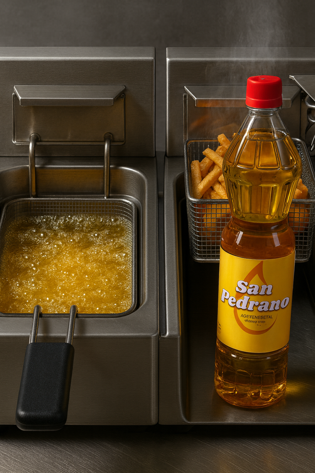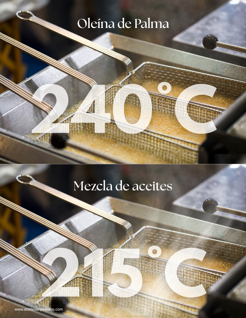Con un punto de humo entre 230 °C y 240 °C, San Pedrano está diseñado para procesos de fritura exigentes, donde otros aceites como los de girasol, maíz o mezclas con soya comienzan a descomponerse desde los 215 °C.
